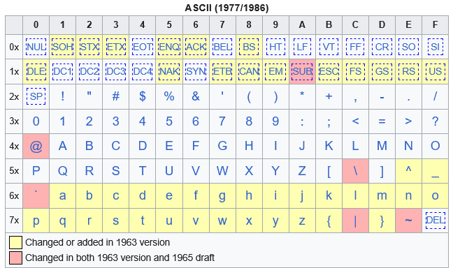 Source: https://en.wikipedia.org/wiki/ASCII#Character_set